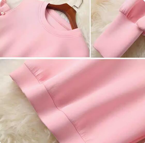 トップス スカート ボトムス スウェット 膝丈 ひざ丈 袖あり 袖コンシャス ラウンドネック Aライン ハイウエスト 伸縮性 ポリエステル 上下セット 2点セット ツーピース かわいい 大人可愛い おしゃれ お洒落 無地 柄 秋 冬 20代 30代 レディース 女性用 デート お出かけ 着回し 普段使い S M L XL ピンク