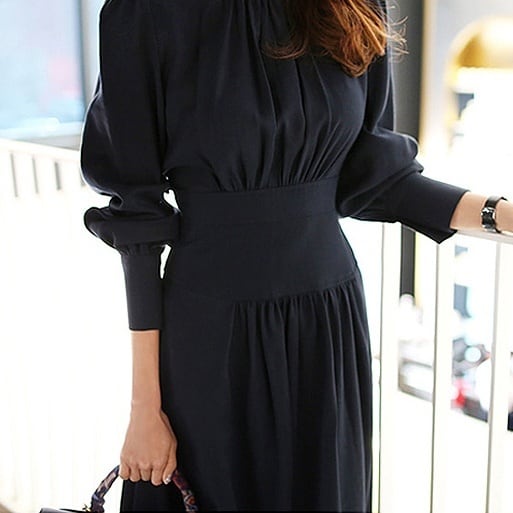 ワンピース ミモレ丈ワンピース 長袖 ハイネック パフスリーブ マトンスリーブ ウエストマーク ミモレ丈 かわいい 大人可愛い きれいめ シンプル おしゃれ かっこいい レトロ きちんと こなれ感 個性的 主役級 存在感 抜け感 オールシーズン ナチュラル ベーシック フォーマル エレガント 無地 レディース 女性用 OL 通勤 デート お出かけ お泊まりデート イベント 女子会 休日 カフェ ショッピング レストラン 旅行 リゾート コンパ パーティー 二次会 普段使い 着回し 脚長 S M L XL