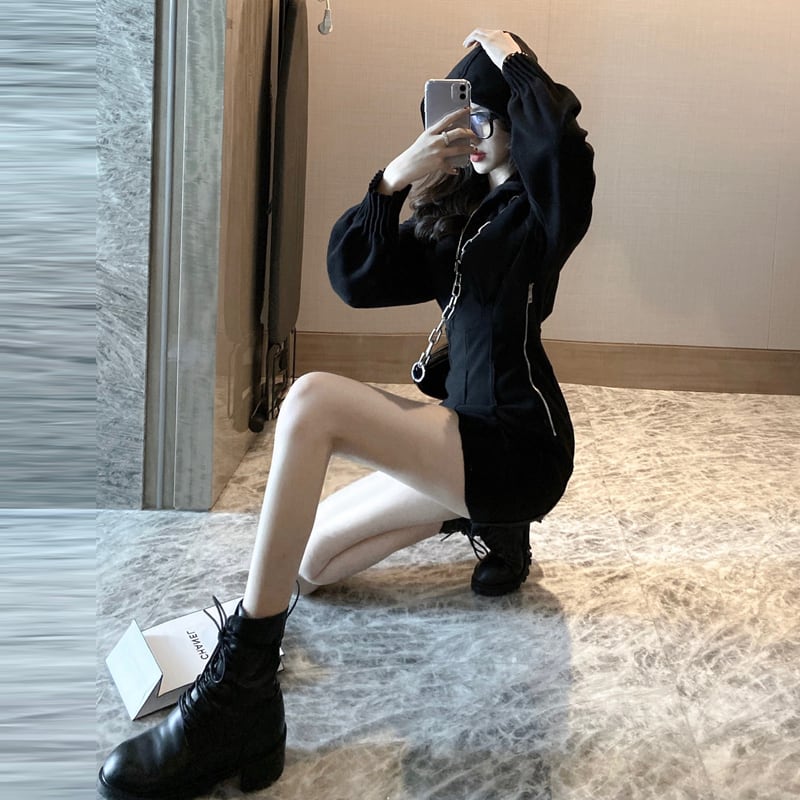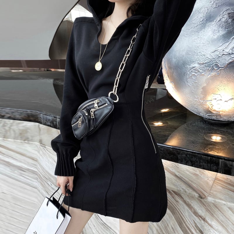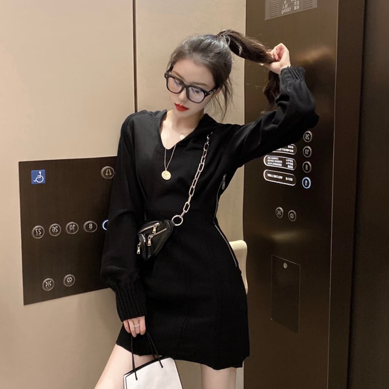 ワンピース ミニワンピース 長袖 Vネック フード付き ミニ丈 かわいい 大人可愛い きれいめ シンプル おしゃれ かっこいい レトロ ラフ ルーズ こなれ感 個性的 主役級 存在感 抜け感 秋 冬 ナチュラル ベーシック キュート セクシー メンズライク レディース 女性用 OL 通勤 学生 通学 デート お出かけ お泊まりデート イベント 女子会 休日 カフェ ショッピング レストラン 旅行 リゾート コンパ レイヤード 重ね着 普段使い 着回し 脚長 S M L トレンド モテ 楽ちん ブラック