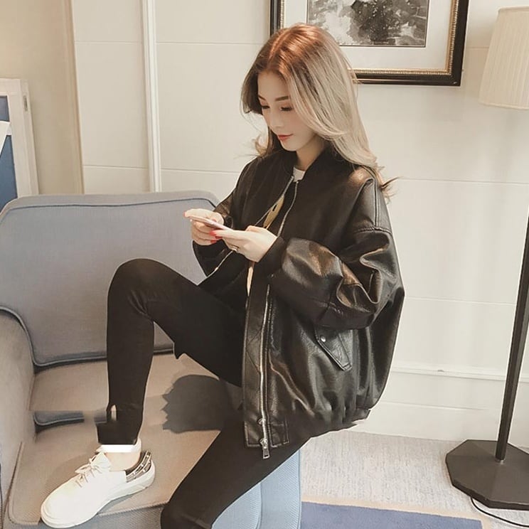 フェイクレザー素材でカジュアルにもきれいめにも使えるので、幅広いシーンで活躍してくれます。