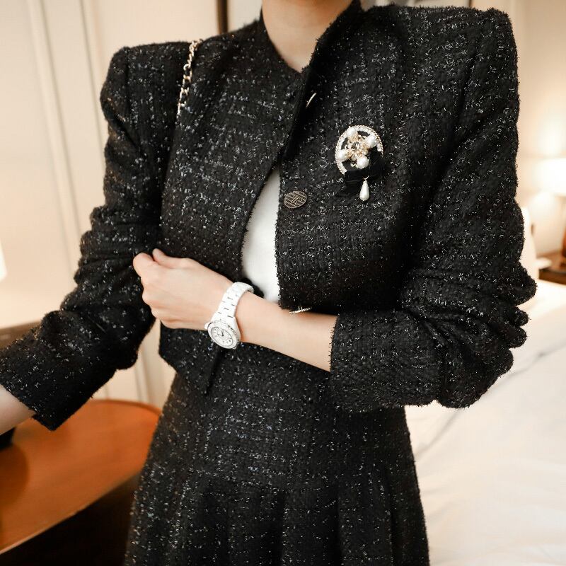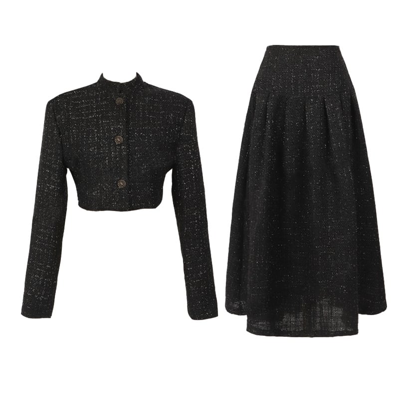 2点セット セットアップ スーツ ジャケット ショート丈 長袖 ハイネック 前開き ボタン ミモレ丈スカート ハイウエスト セミフレア ミモレ丈 かわいい 大人可愛い きれいめ シンプル 上品 おしゃれ レトロ きちんと こなれ感 個性的 主役級 存在感 抜け感 秋 冬 ナチュラル ベーシック フォーマル キュート エレガント レディース 女性用 デート お出かけ お泊まり イベント 女子会 休日 カフェ ショッピング レストラン コンパ パーティー 二次会 ディナー 普段使い 着回し S M L XL