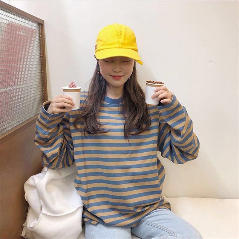 トップス カットソー プルオーバー 長袖 ラウンドネック かわいい 大人可愛い きれいめ シンプル 上品 おしゃれ かっこいい カジュアル レトロ ラフ ルーズ こなれ感 個性的 主役級 存在感 抜け感 オールシーズン ナチュラル ベーシック キュート クール メンズライク ボーダー柄 レディース 女性用 OL 通勤 学生 通学 デート お出かけ お泊まり イベント 女子会 休日 カフェ ショッピング レストラン コンパ レイヤード 重ね着 普段使い 着回し M L XL 2XL 定番アイテム モテ