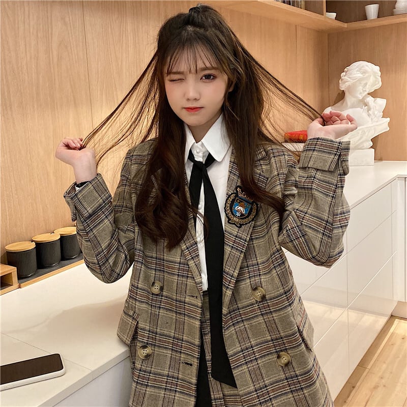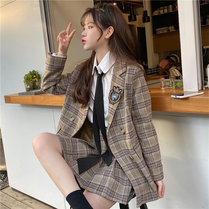 この3点セットは、ジャケット、ミニスカート、そして白シャツがセットになったアイテムです。