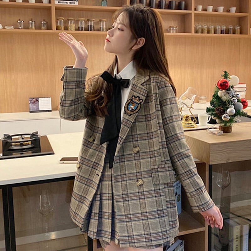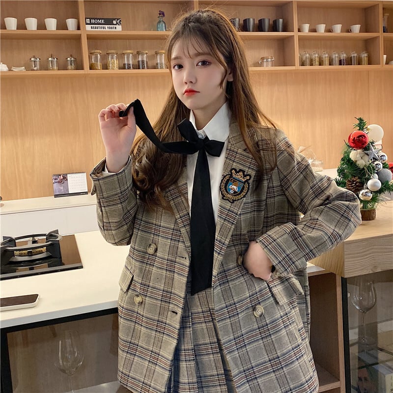 3点セット セットアップ ジャケット ミディアム丈 長袖 襟付き 前開き ボタン ポケット ミニスカート プリーツスカート ミニ丈 白シャツ 長袖 角襟 リボン かわいい 大人可愛い きれいめ シンプル 上品 おしゃれ レトロ きちんと こなれ感 個性的 主役級 存在感 抜け感 秋 冬 ナチュラル ベーシック フォーマル キュート エレガント レディース 女性用 学生 通学 デート お出かけ お泊まり イベント 女子会 休日 カフェ ショッピング 普段使い 着回し デイリー コスプレ S M L