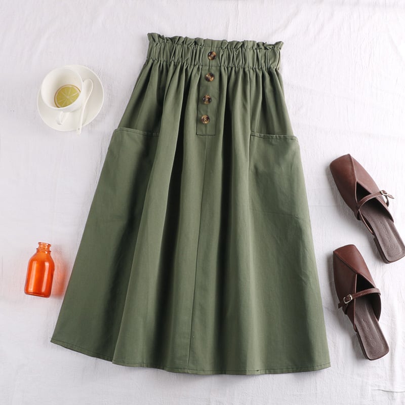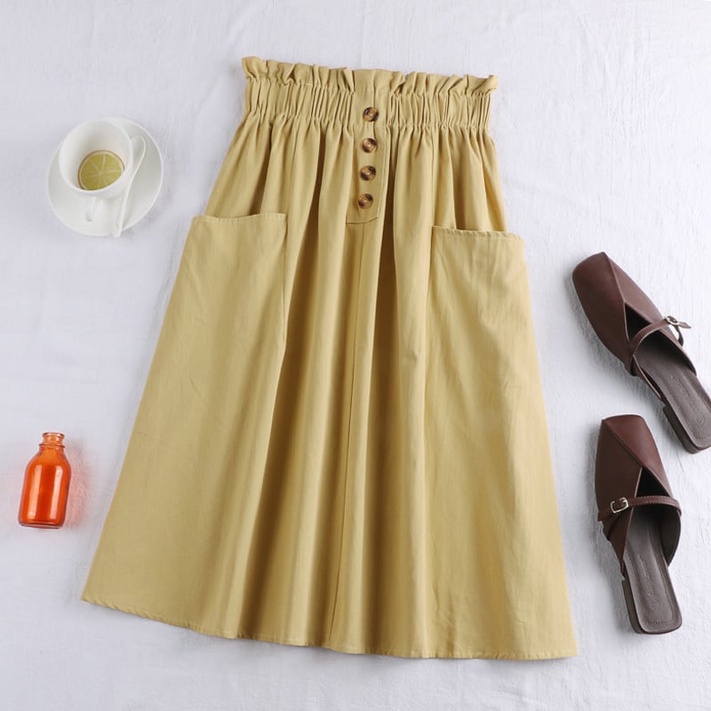 ボトムス スカート ミディアム丈スカート Aライン ウエストゴム ポケット デザインボタン ミディアム丈 リネン かわいい 大人可愛い きれいめ シンプル カジュアル 上品 おしゃれ かっこい 大人女子 こなれ感 ラフ ルーズ 個性的 主役級 存在感 オールシーズン ナチュラル ベーシック キュート 無地 レディース 女性用 ママ OL 通勤 学生 通学 デート お出かけ お泊まり イベント 女子会 旅行 休日 カフェ ショッピング レストラン コンパ 普段使い 着回し デイリー 脚長 ワンサイズ